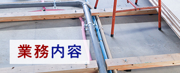 当社は、屋内外の給排水・衛生設備工事・空調設備工事を行っております。みなさまが快適に過ごせるように設備を整える、重要な仕事です。